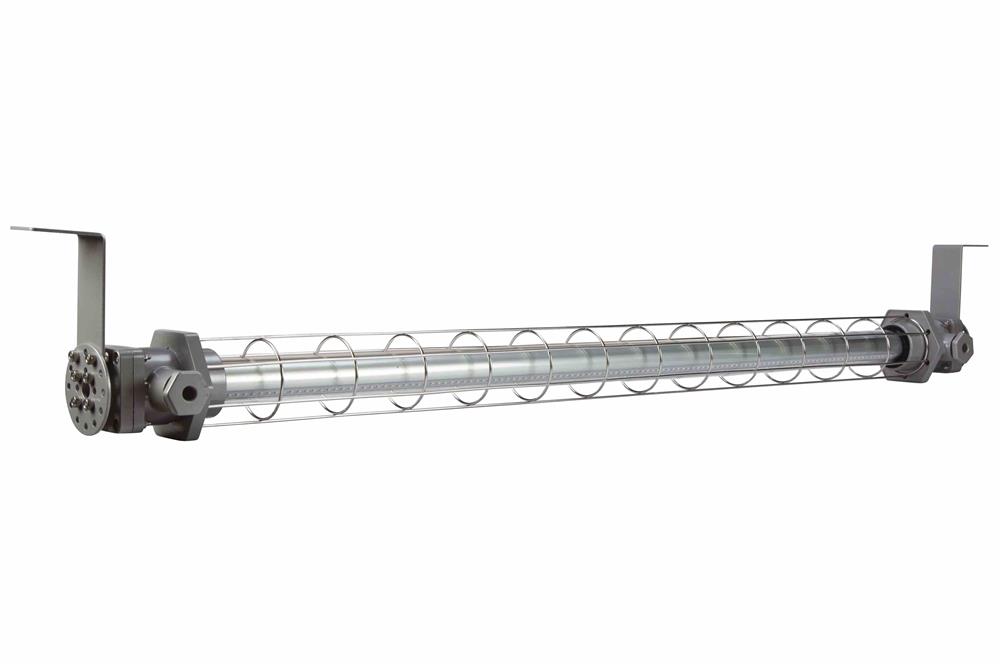 Larson Electronics’ explosion-proof LED fixture features a tempered borosilicate glass tube protecting the LED assembly that sits inside an aluminum wire guard to prevent damage to the light fixture. This light is universal voltage capable and can be operated with 100-277V AC 50/60Hz and is IP67 rated. This unit features a color temperature of 5000K with a 3000K and 4500K option available. This unit comes with terminal strips and adjustable surface mount brackets. Suitable applications include paint spray booths, refineries, chemical plants and more.