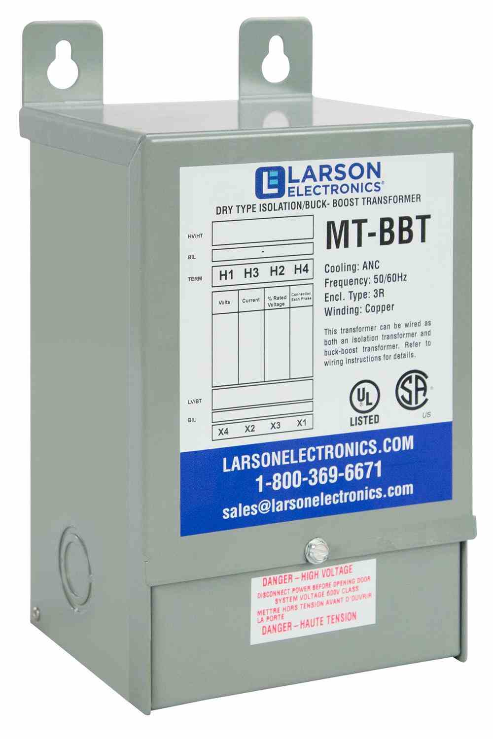Larson Electronics’ isolation transformer features 180˚C insulation with a 115˚C temperature rise and is rated IP24. Precision cut copper transformer winding material is used to improve performance and closer tolerances are used during manufacturing to eliminate burrs that can hinder performance. Each core is specially coated to prevent moisture and is electrically balanced to minimize axial forces during short circuit events. Suitable applications include power supplies for computers, medical devices, and more.