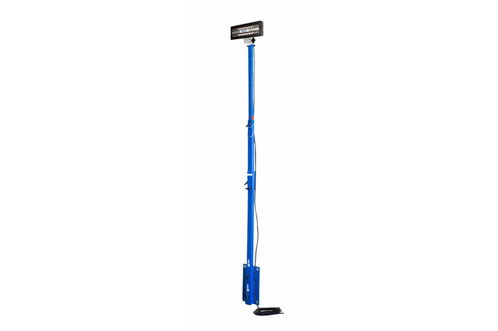 The WAL-TPM-LEDL160-25-LV 160-watt pole mount LED light offers 20,500 lumens of cool white light output with a color temperature rating of 5000K. This unit features an LED lamp head that is mounted on top of a telescoping pole with an adjustable knuckle mount. This IP67-rated unit can withstand rapid temperature changes and features an ambient operating temperature between -40˚C and 80˚C.