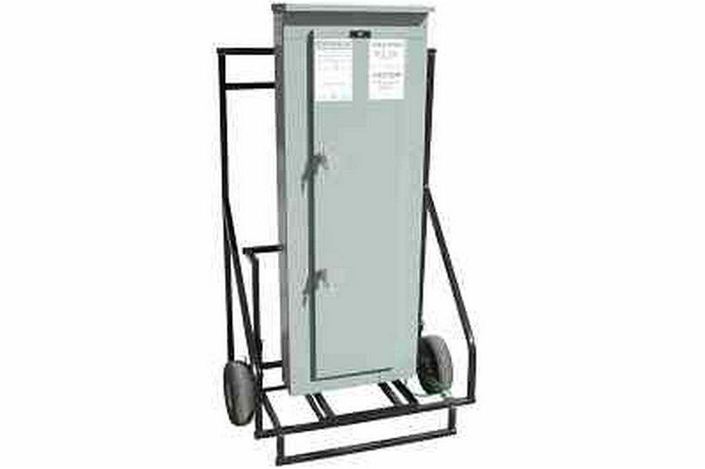 The MGP-208Y.120.3P-250AMB-4X50AB-10X20AB portable temporary power distribution panel comes equipped with four 50-amp 208V breakers and 10, 20-amp 120V breakers. This unit’s load center is mounted on a 3/16” thick carbon steel upright cart style frame with two rubber tires for easy mobility. This unit features a center point life eye that allows for easy lifting with cable or chain hooks.