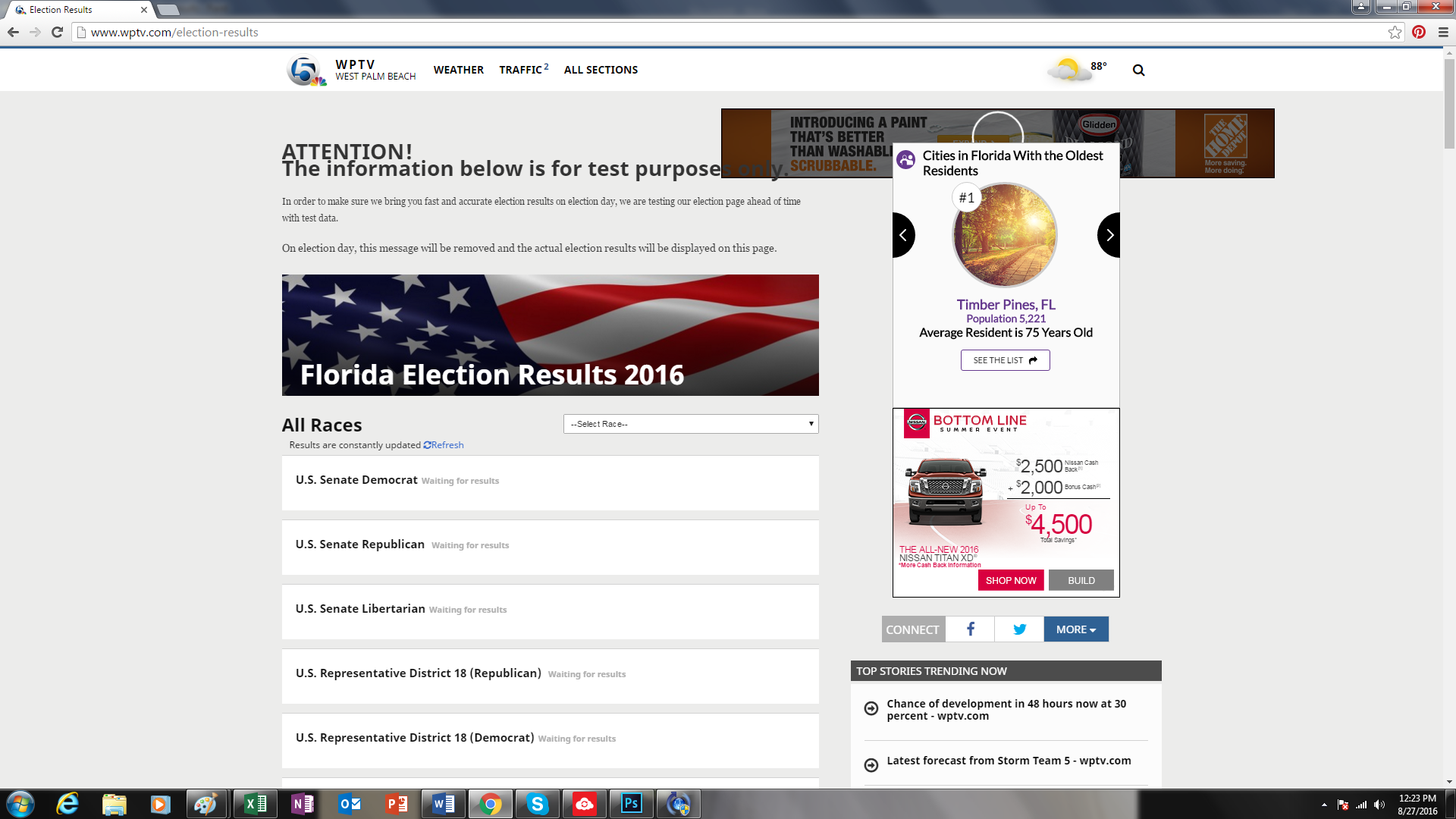 This information is inaccurate and disrespects Laurel Bennett, her hardworking campaign volunteers and also the District 86 voters who have and haven't yet voted for Laurel on August 30th. Google is the most favored search engine in the U.S. and receives over 70% of searches now. Many people rely on Google to find early voting times and locations this last week, and Palm Beach County is no exception to how people obtain information through this search engine. Besides Early Voting times, many people will rely on Google to find the voting locations and times on August 30th Election Day. This is very troubling, that West Palm Beach News would show fake results on their page just for "testing". If their web team was conscientious and was just testing the page as it says now at the link, they would have specified the page to be blocked from search results while testing with a robots.txt file in order to prevent getting Indexed by Google. Sometimes it has taken two weeks for Google to index a website in their results, which then begs the question.. How long were the search results of the fake election numbers up on the wptv website? Screenshots are included below.