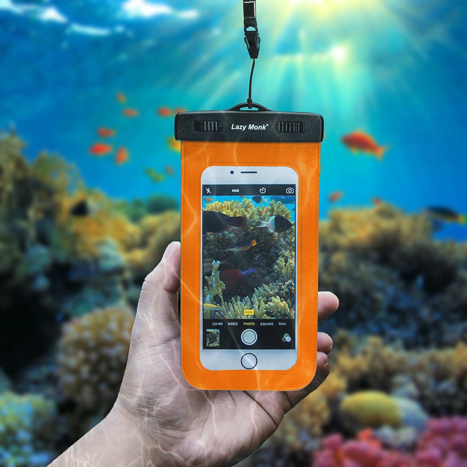 The dry bag comes in 2 colors: orange and blue. The Dry Bag Backpack Sack, made of durable 500 D PVC, has a premium roll top sealing mechanism, perfectly finished with a hardened buckle to ensure full protection. The Dry Bag Waterproof Kit contains the large dry bag backpack sack, coming in 2 sizes: 10 L or 20 L, the universal water-resistant phone case that fits all cell phones plus a multifunctional bandana as a gift from the Lazy Monk team. In the bundle, customers will also receive the incredible Songs of Water hardcover book, the Go To tips for adventurers.