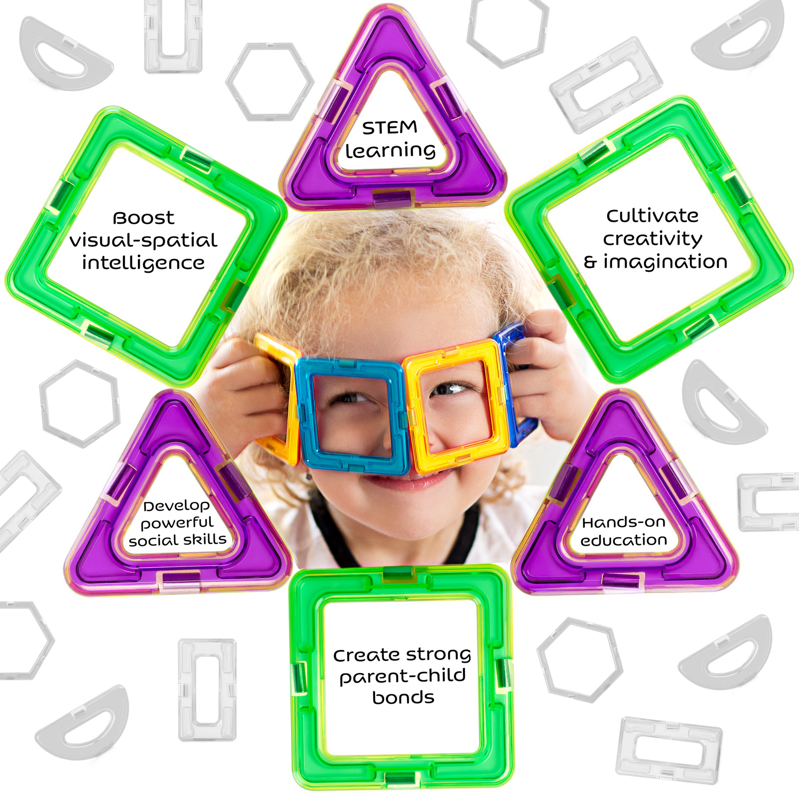 These magnetic building blocks are the ultimate hands-on learning tool. Why? Because they are versatile, fun to use and they can be combined in so many different ways. Plus, let's not forget that kids of all ages love these magnetic blocks, especially since a Ferris wheel, vehicle set and 2 flamboyant party pinwheels are included! Finally, learning can be fun and cherished by kids!