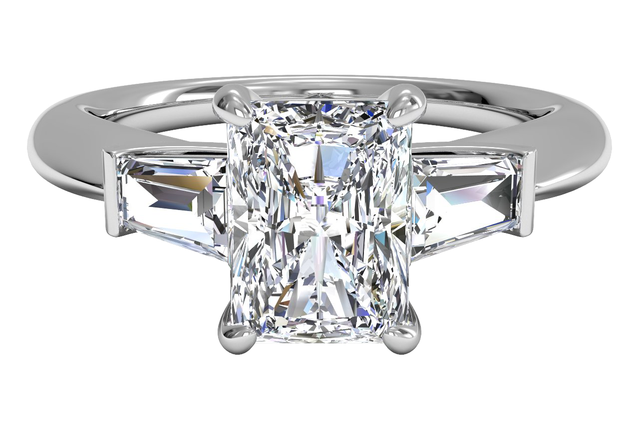 Flanking the sizable center stone are two bullet-cut side stones, elegantly enhancing the overall beauty of the ring. The shared-prong platinum setting provides a timeless and sophisticated look, further emphasizing the exceptional craftsmanship that went into creating this masterpiece.