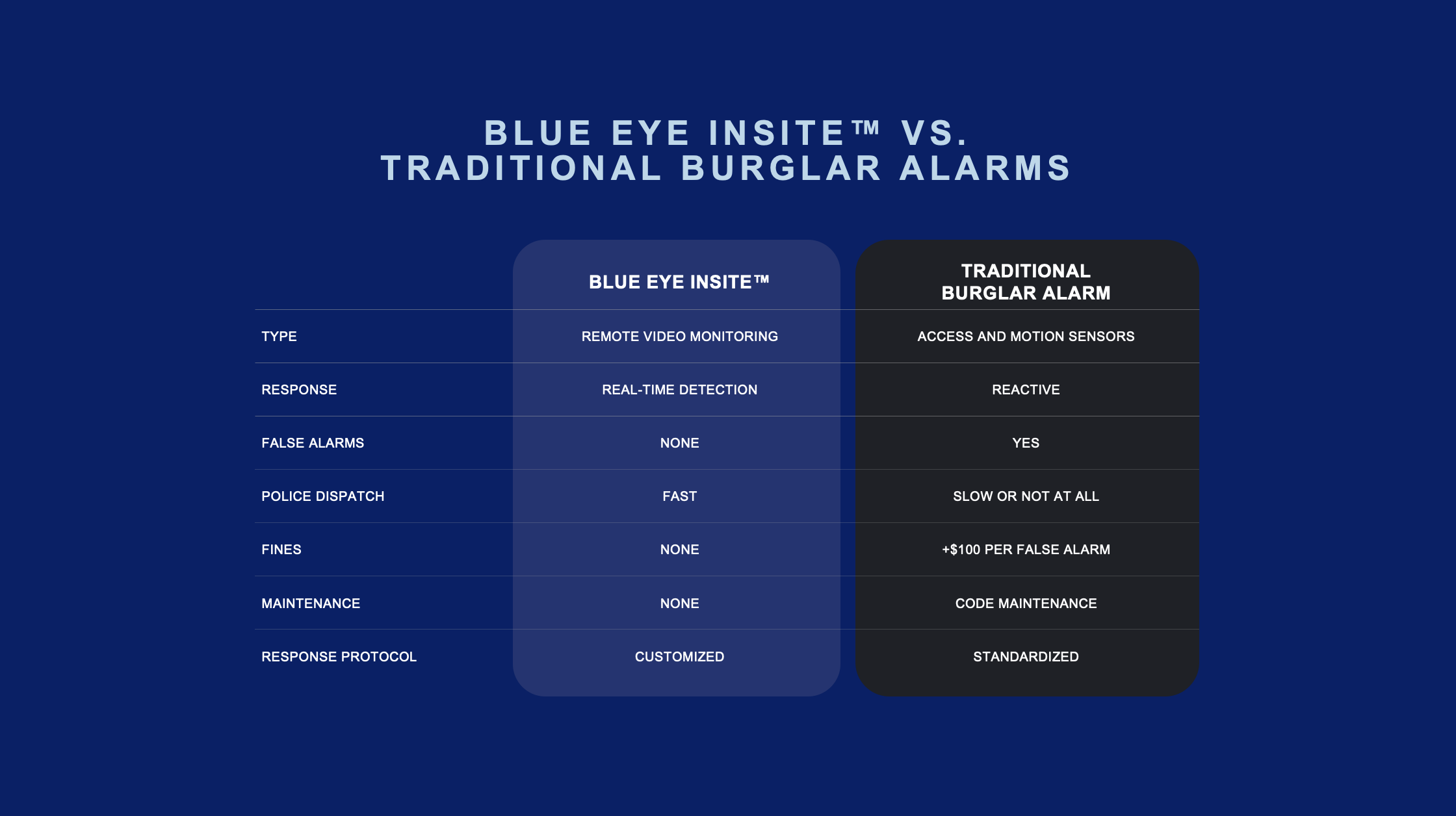 "Legacy systems often leave businesses vulnerable and unnecessarily burden police departments," said Steve Jackson, President of Blue Eye. "Blue Eye InSite™ solves this problem by eliminating false alarms and ensuring every alert is actionable. It's a smarter, more effective way to protect your business."