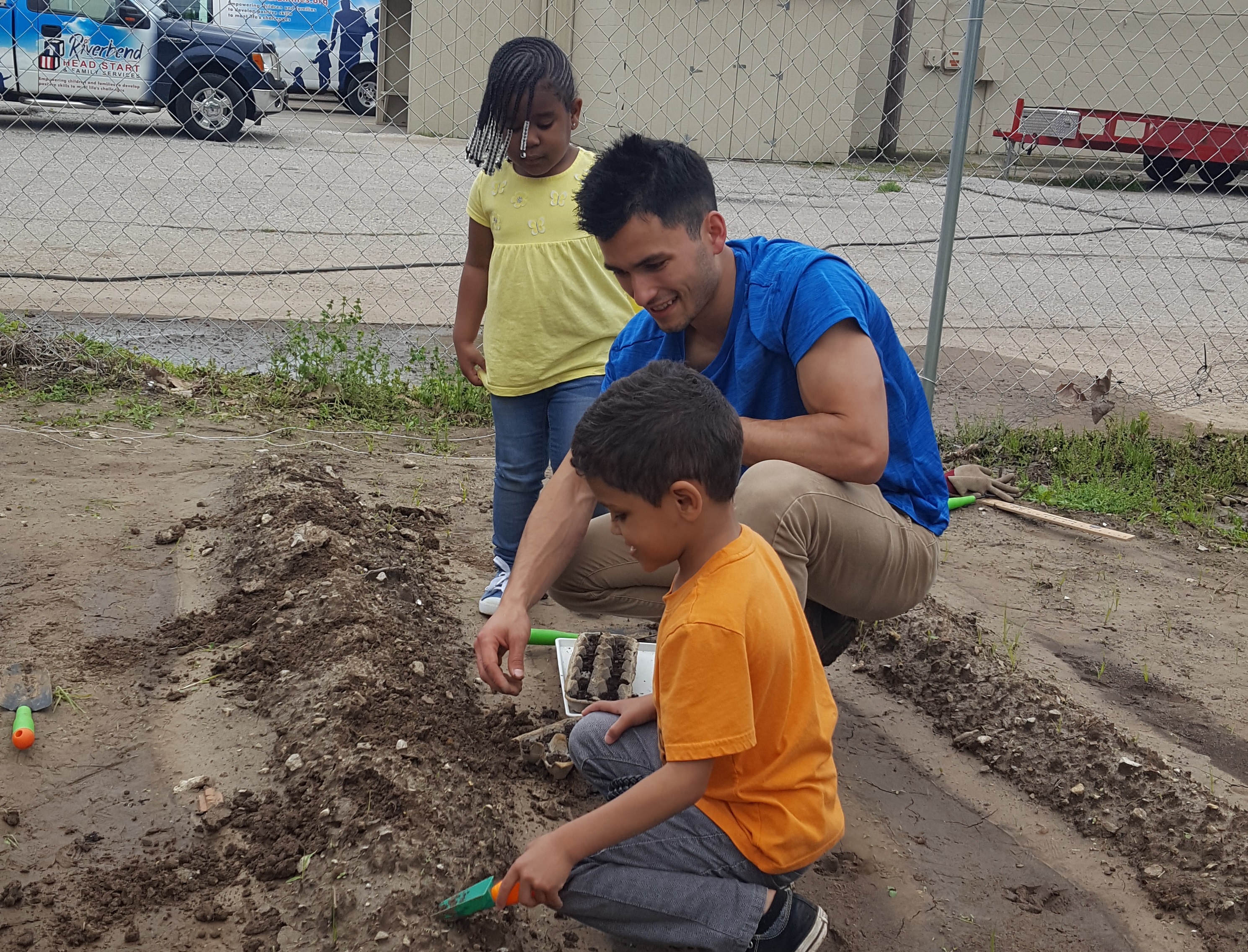 The nutrition education that Riverbend teaches is two-fold, focusing on kids at the center and kids at home. Wanting to include more fresh, home-cooked meals on the menu, Jon began establishing gardens at all of the sites. Both the staff and families are instrumental in the success of the gardens. The children tend and harvest the gardens. The nutrition curriculum from the garden incorporates phonics, math, science and social studies. Teachers focus on what healthy choices are, what fruits and vegetables do to strengthen our bodies, and lead monthly cooking activities.
