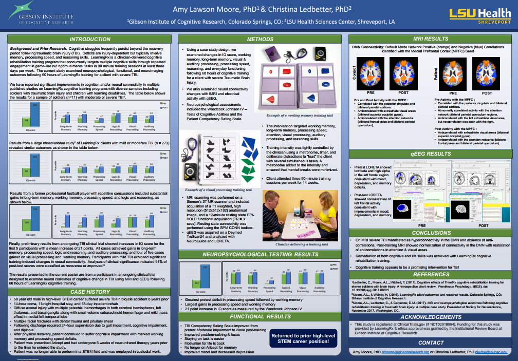 COLORADO SPRINGS, Colo., January 10, 2018 (Newswire.com) - Neuroscientist Dr. Christina Ledbetter and Gibson Institute of Cognitive Research director Dr. Amy Moore presented the results of a case study on LearningRx personal brain training at the 2018 Traumatic Brain Injury Summit in Vail, Colorado, today.