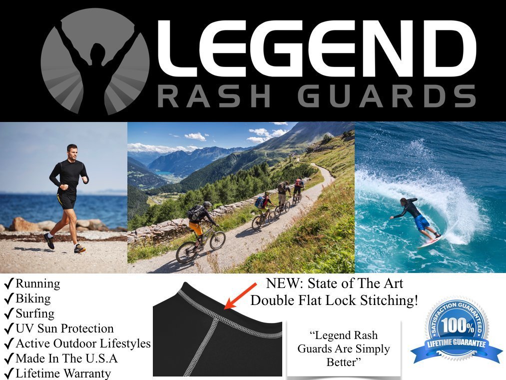 All Legends products are “Made In The USA” which makes them very unique in the compression clothing industry. Every compression product they offer has a UPF Rating of 50+, which means applying sunscreen anywhere your rash guard is covering is unnecessary. Plus, best of all, Legend Rash Guard products offer LIFETIME WARRANTY! How can you beat that?