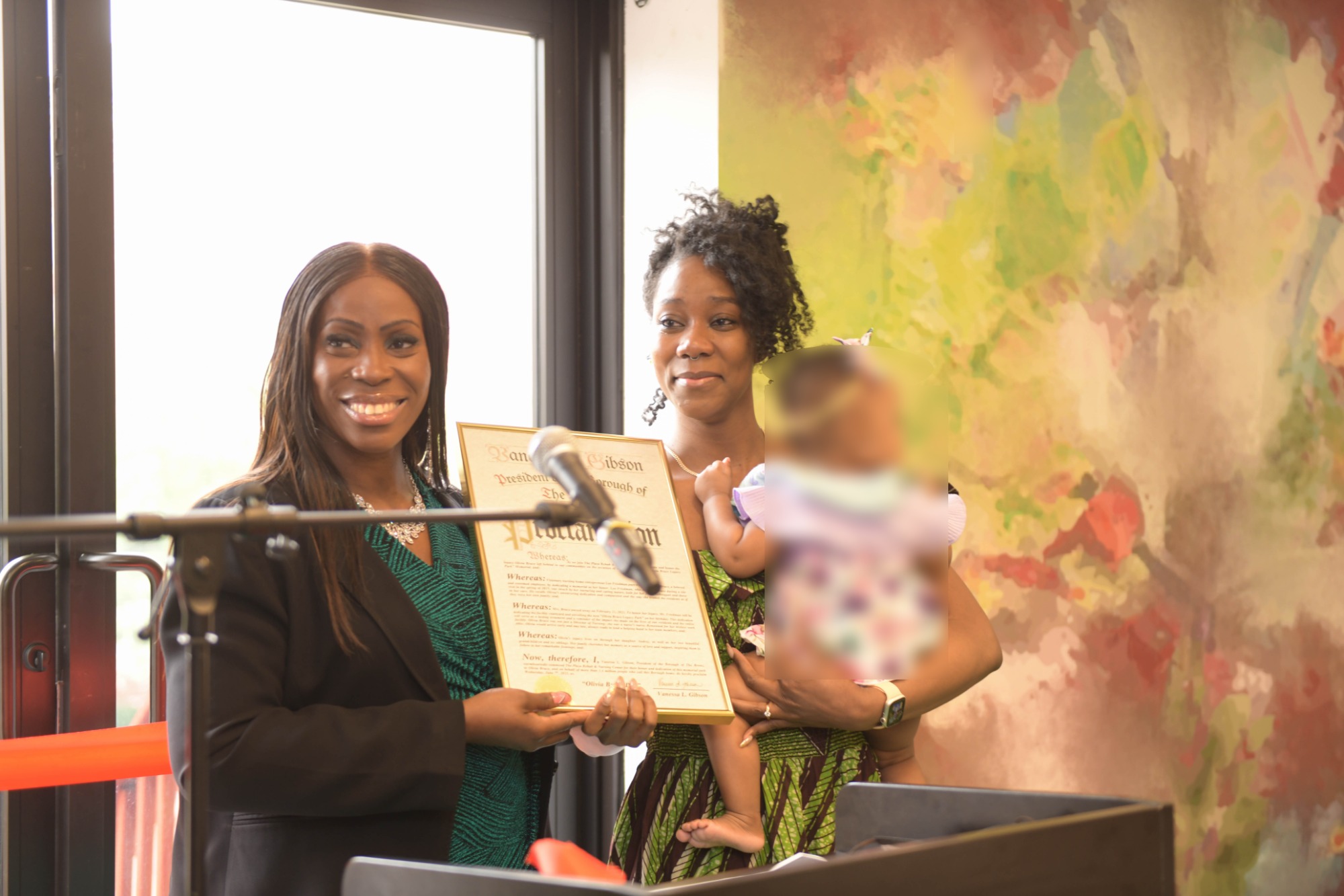 The ceremony began with special guests in attendance, including Bronx Borough President Vanessa L. Gibson and Bronx Borough Director of Community Affairs Alina Dowe. President Gibson presented the Plaza Rehab & Nursing Center with a proclamation on behalf of 1.4 million people in the Bronx, declaring June 7, 2023, as Olivia Bruce Day. Additionally, Director Dowe presented the facility with a certificate of recognition on behalf of the Mayor for their outstanding contribution to the community.