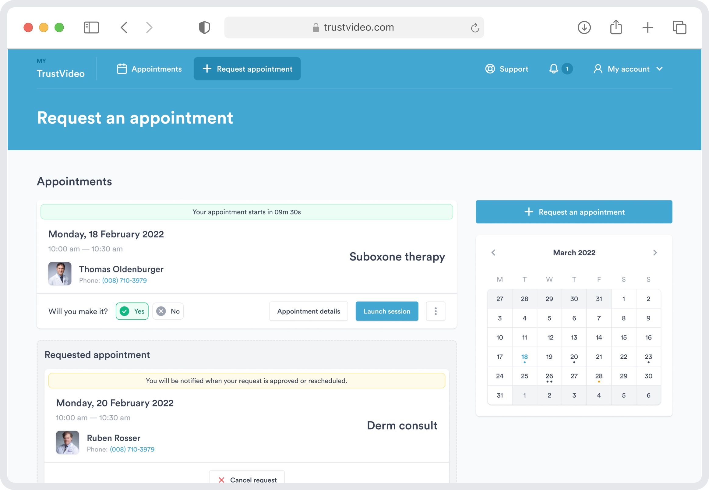 TrustVideo's software platform includes advanced functionality for bio-analytics, medical cart software and medical devices, virtual triage for on-demand queueing to virtual clinics, and a dispatcher role for call center appointment setting or on-demand triage.