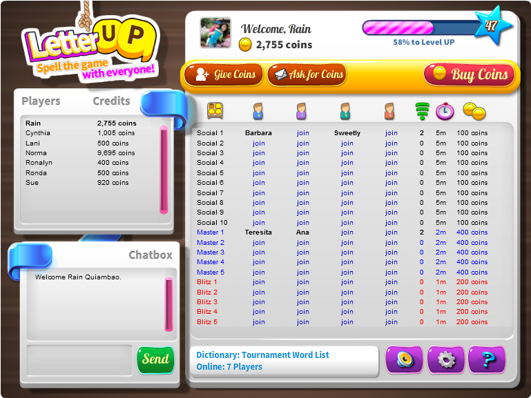 Letter UP was created by independent game developer Hey Snails Inc. It is a multiplayer word game played in 'real-time' - a key strength that many who have tried the game find really exciting and a lot more fun.