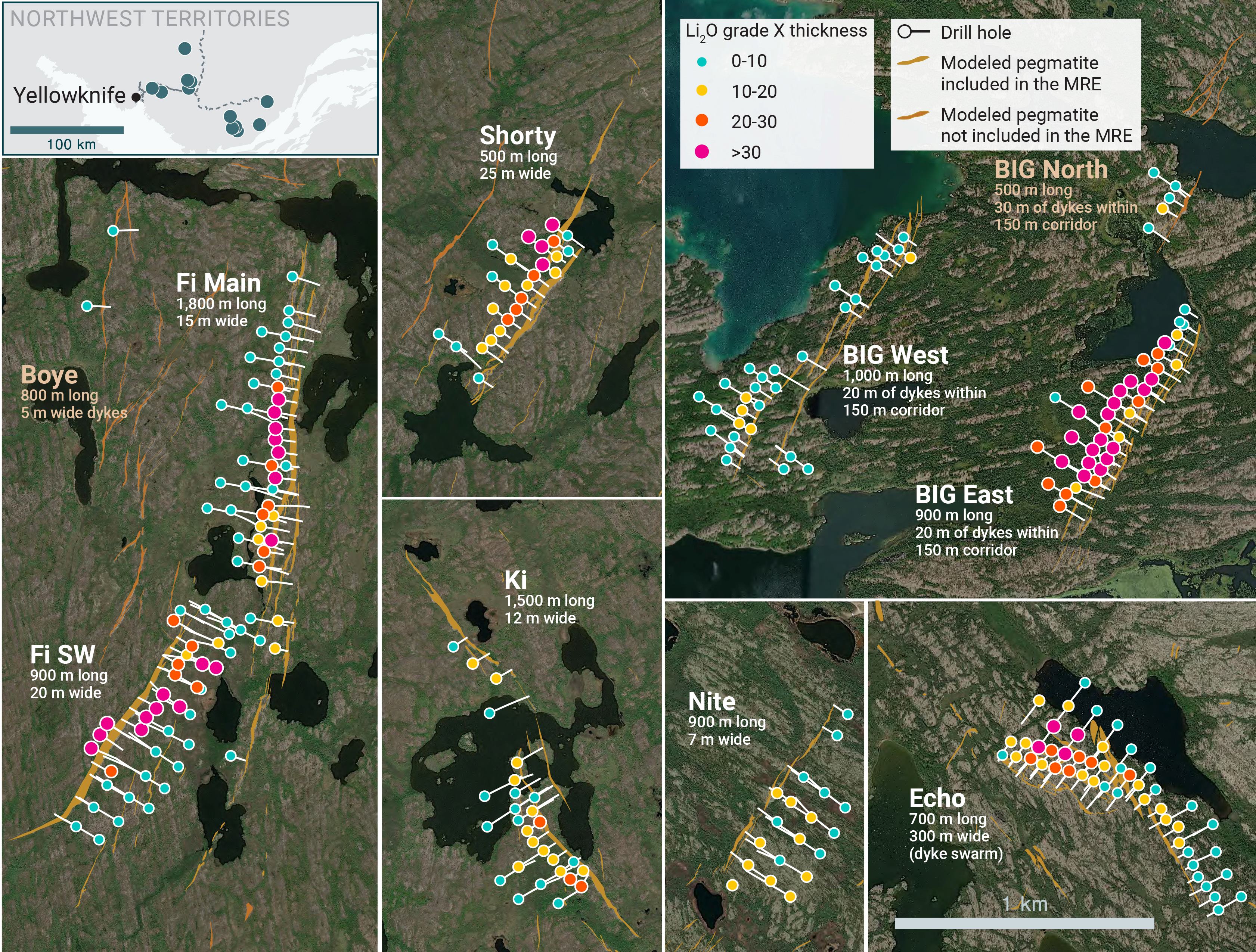 5 undrilled spodumene dykes hosted within the Yellowknife Lithium Project that were not included in the maiden resource estimate have excellent potential to further expand the resource profile.