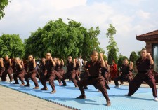 The nuns hail from the Drukpa Lineage of Indian Buddhism, which has a thousand-year history stretching back to the Indian Saint Naropa, and continues its legacy today with the spiritual head, the Gyalwang Drukpa. With his encouragement, the nuns began learning Kung Fu to build strength and confidence. They now use those skills to serve others through unimaginable acts of bravery - from their recent 5,200-mile "Bicycle Yatra" from Kathmandu, Nepal to Ladakh, India to speak out against human trafficking, to their refusal to evacuate after the 2015 Nepal earthquake in order to deliver critical aid to neglected regions. Adept in both weaponry and hand-to-hand combat, they initiated self-defense training for young girls in the Himalayas, where violence against women is rarely reported. They also run free health clinics, respond to calls for emergency animal rescue, and have removed thousands of pounds of plastic litter from Himalayan and Indian land. With over 700 Drukpa nuns in the ranks, there is a long waiting list of women and girls who want to join them.