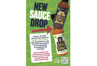 Each bottle of sauce features the Live Wildly Pledge to protect wild Florida along with a QR code that links customers to the Live Wildly website where they can learn more about conservation efforts across the state and sign the pledge themselves.