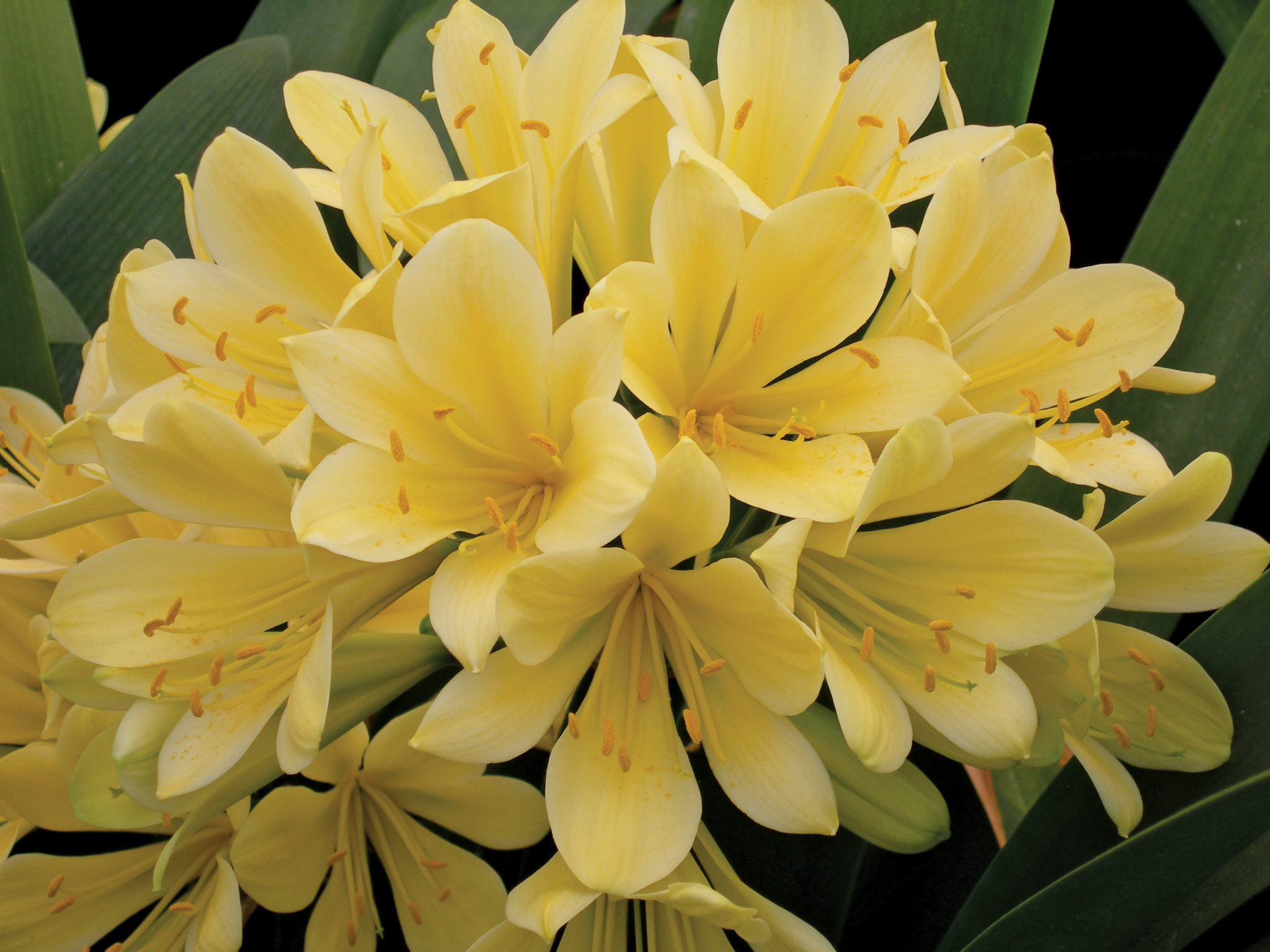 Clivias are popular, easy-to-grow houseplants for good reason. They are tough and resilient members of the amaryllis family and they flower profusely. "Good Hope" is a new strain of Clivia miniata that has long green leaves and bright yellow flowers.