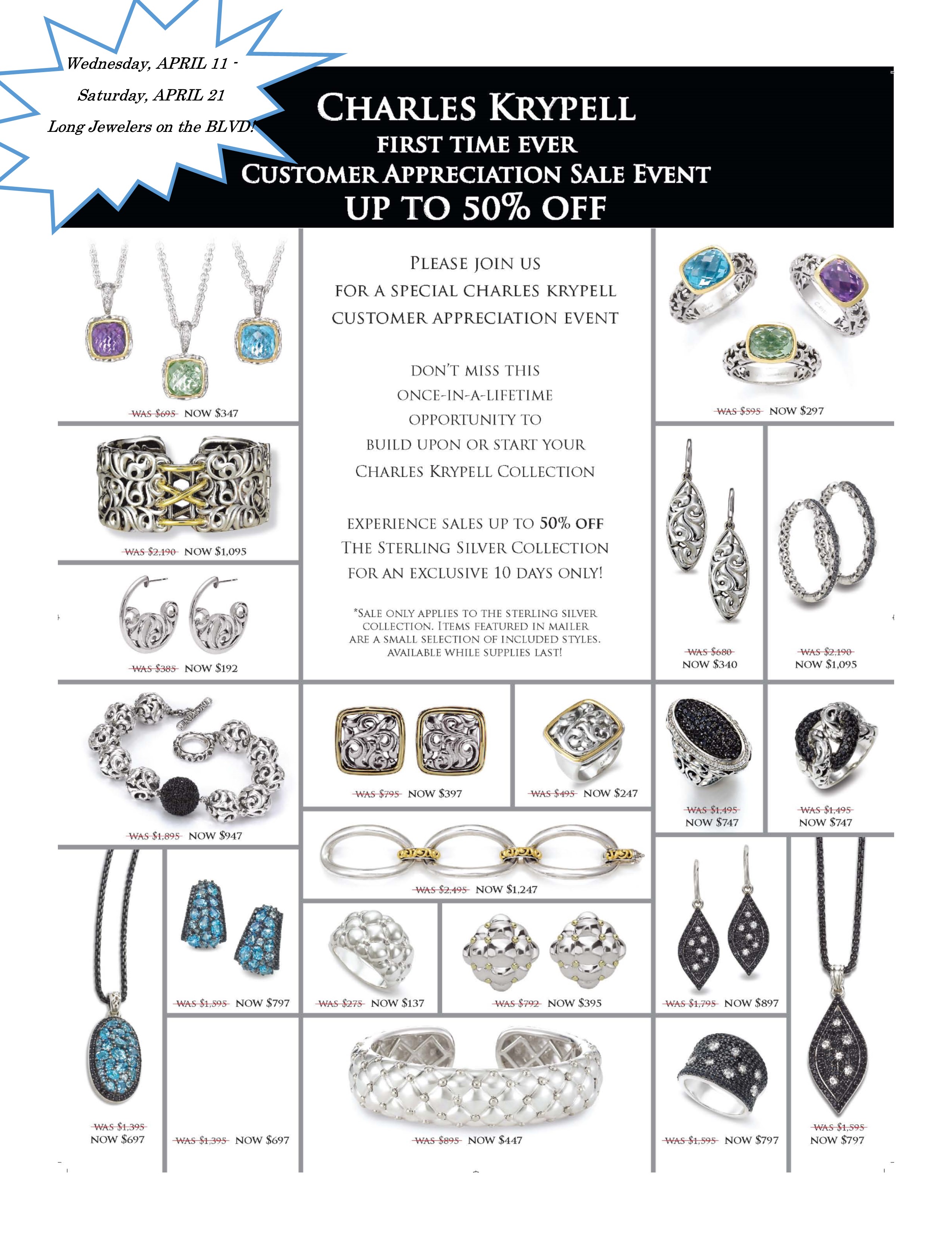 Tags: Charles Krypell, customer appreciation sale, Long Jewelers, sterling silver jewelry, Virginia Beach