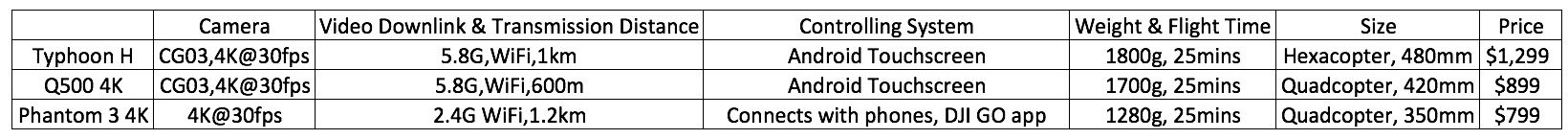 The Typhoon H and Q500 4K essentially occupy the same position in the market, but the premium pricing of the H seems to contradict this. The Typhoon H has the same design and user experience as the other products in the Typhoon series, but when it comes to functionality, the DJI Phantom 3 4K is more powerful, flies better and has better photography, editing, and sharing features that make it a better choice for new pilots.