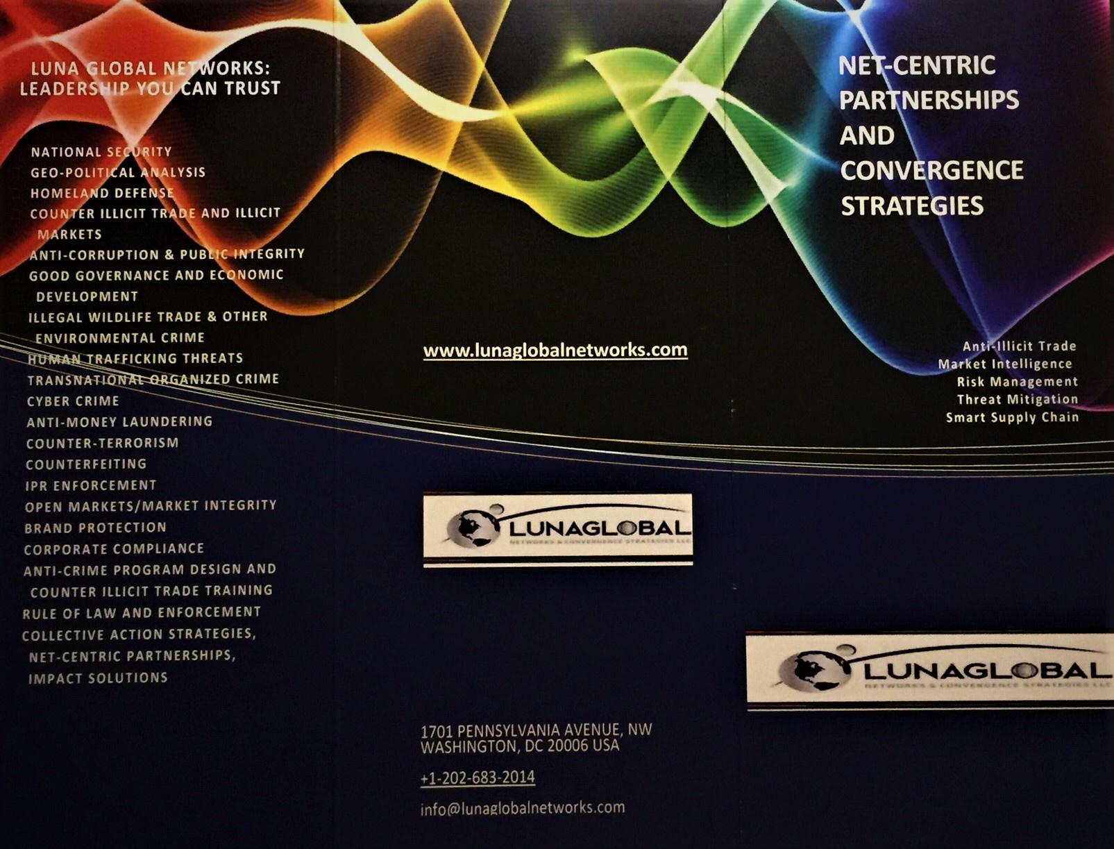 A Strategic Advantage: Luna Global Networks is an international security consultancy, well-positioned to help businesses and NGOs tackle the most pressing illicit trade and governance challenges and related security threats across borders, markets and industries through convergence strategies and tactical plans that target an illicit threat environment more holistically. LGN works on developing net-centric partnerships (a network of networks) that harness collective action through strategic alliances, the designing of pragmatic training to counter illicit trade, leveraging of innovative net-centric capabilities and the harnessing of transformative technologies that help produce greater results and more enduring solutions.