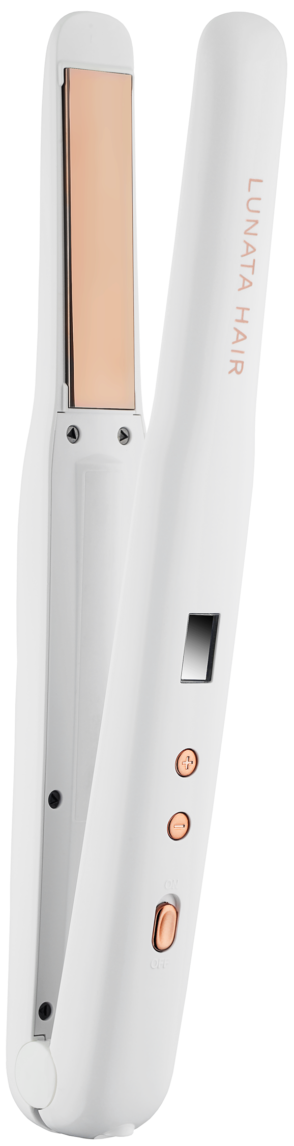 Lunata Hair’s wireless straighteners use high quality, Samsung Lithium-ion batteries and can hold a charge for up to 45 minutes at the highest setting. Heat settings range from 200-400 degrees Fahrenheit.