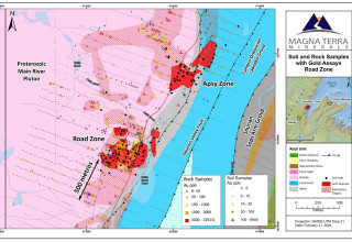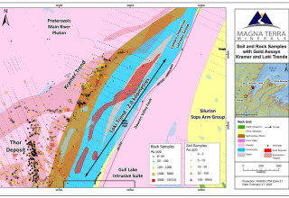 , February 28, 2024 (Newswire.com) - February 28, 2024 / Magna Terra Minerals Inc. (the "Company" or "Magna Terra") (TSX-V:MTT) is pleased to announce results of an exploration program completed in fall 2023 on its 100% owned flagship Great Northern Project ("Great Northern" or the "Project"), located in western Newfoundland. The exploration program comprised a 246-line kilometre drone magnetic survey, collection of 25 rock grab samples, and 1,388 B-horizon soil samples covering unexplored areas of the Project. The program was partially funded by the Government of Newfoundland and Labrador through the Junior Mining Assistance Program (JEA).