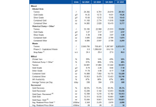 In Q1 2025, diluted vein material was sourced from three different veins: Las Conchitas South (El Limon-Mango 20%, Las Dolores 24%) and Las Conchitas Central (Cruz Grande 56%). In Q2 2025, production is also expected from the high-grade Bayacun and Intermediate veins located in Las Conchitas South and Las Conchitas Central, respectively.