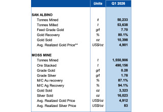 Akiba Leisman, Chief Executive Officer of Mako states that "Q1 2026 was another very strong quarter for the Company. Gold sales were a record 13,721 ounces at a record average gold price of $4,904 per ounce, generating $68.6 million in revenue for the quarter, which was 36% higher than last quarter, which in turn was the previous record for the Company by over 30%. Cash and trade receivables increased by $18 million after paying a previously accrued $13.2 million annual tax payable. Moss is continuing to ramp-up to steady state production. We expect to access the higher-grade part of the deposit late this year, which is expected to have a further meaningful contribution to the Company's cash flow. The draft Environmental and Social Impact Assessment has been submitted to the Guyana Environmental Protection Agency, and the Company will commence construction at Mt. Hamilton in Nevada over the course of the next few weeks. Mako is currently debt free with a cash position of $96.1 million and generating a significant amount of cash from its 2 operating assets. These financial resources are currently more than sufficient to complete the development of both of the Company's development assets."