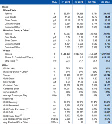 24,819 tonnes mined containing 11,818 oz Au at 14.81 g/t Au and 10,419 oz Ag at 13.06 g/t Ag from diluted vein material