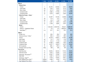 The mine produced an average of 508 tonnes per day of diluted vein and historical dump + other material in Q4 2024, with a strip ratio of 27.6:1, with an additional 614,119 tonnes of pre-stripping for the second phase of mining at Las Conchitas Central and the third phase of mining at Las Conchitas South.