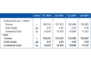 12,053 oz Au recovered and 10,803 oz Au sold during Q4 2024 resulting in record gold revenues of US$ 28.8 million