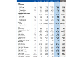 - 11,567 oz Au Equiv. recovered and 13,481 oz Au. Equiv. sold during the quarter which includes the sale of finished goods inventory that was held over from Q3 2023