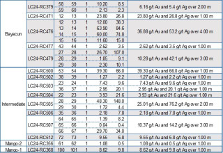 Note: The mineralized intervals shown above utilize a 1.0 g/t gold cut-off grade with not more than 1.0 m of internal dilution. *Widths are reported as drill hole lengths. True width is estimated to be between 70% and 100% of the downhole width. In addition to the drill holes presented in the table above, the following drill holes returned only anomalous values: LC24-RC417, LC24-RC426, LC24-RC427, LC24-RC432, LC24-RC435, LC24-RC439 to LC24-RC442, LC24-RC448, LC24-RC460, LC24-RC467, LC24-RC469, LC24-RC353, LC24-RC360, LC24-RC367, LC24-RC375, LC24-RC470, LC24-RC473, LC24-RC474, LC24-RC509 and LC24-RC510. In addition to the drill holes presented in the table above, the following drill holes returned no significant values: LC24-RC414 to LC24-RC416, LC24-RC418, LC24-RC419, LC24-RC429, LC24-RC433, LC24-RC437, LC24-RC445, LC24-RC446, LC24-RC449 to LC24-RC457, LC24-RC461, LC24-RC462, LC24-RC468, LC24-RC369, LC24-RC377, LC24-RC393, LC24-RC378, LC24-RC380, LC24-RC472, LC24-RC475, LC24-RC478, LC24-RC501, LC24-RC508 and LC24-RC511.