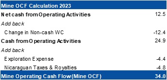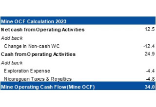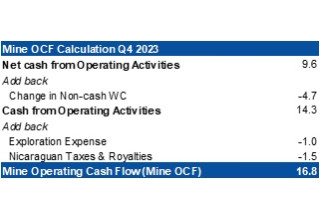 "Mine OCF" represents operating cash flow, excluding Nicaraguan taxes and royalties, changes in non-cash working capital and exploration expenses.