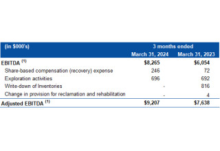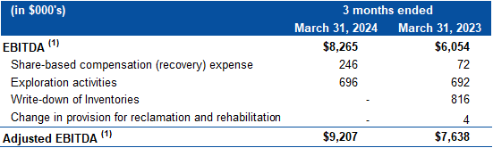 "Adjusted EBITDA" represents EBITDA, adjusted to exclude exploration activities, share-based compensation and change in provision for reclamation and rehabilitation.