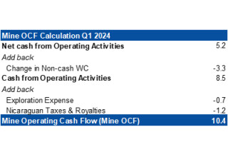 "Mine OCF" represents operating cash flow, excluding Nicaraguan taxes and royalties, changes in non-cash working capital and exploration expenses.