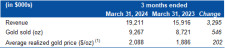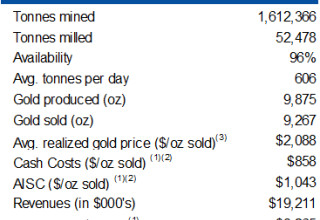 "Total cash costs per ounce sold" is calculated by deducting revenues from silver sales from production cash costs and production taxes and royalties and dividing the sum by the number of gold ounces sold. Production cash costs include mining, milling, mine site security and mine site administration costs.