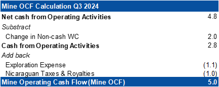 Q3 2024 - Mine OCF Calculation and Cash Reconciliation (in $ millions)