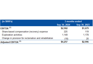 "Adjusted EBITDA" represents EBITDA, adjusted to exclude exploration activities, share-based compensation and change in provision for reclamation and rehabilitation.
