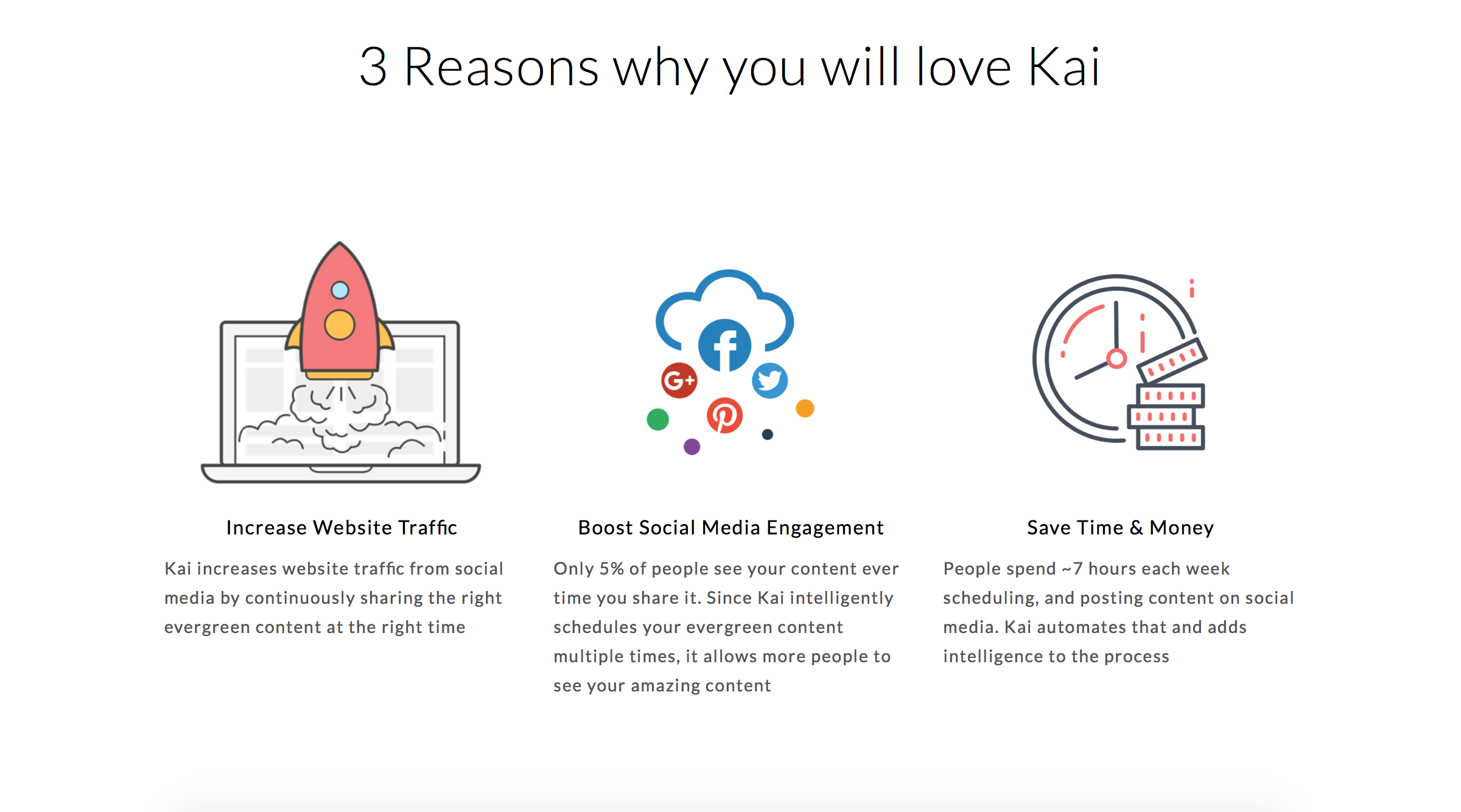SmartKai boasts of using IBM Watson (the famous supercomputer that won Jeopardy) along with sophisticated proprietary AI technology to save social media marketers 30 hours each month and 10x their social media impact.