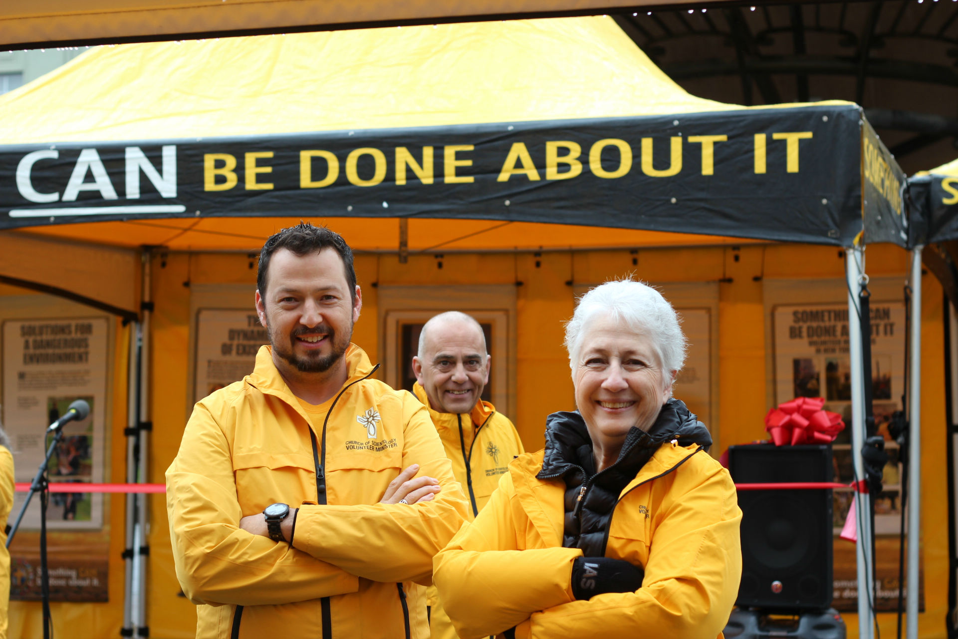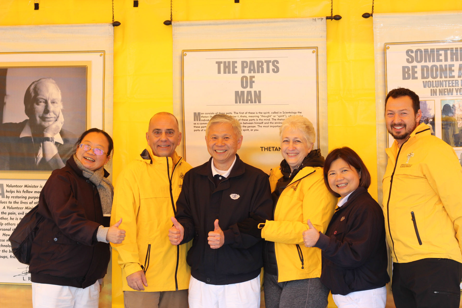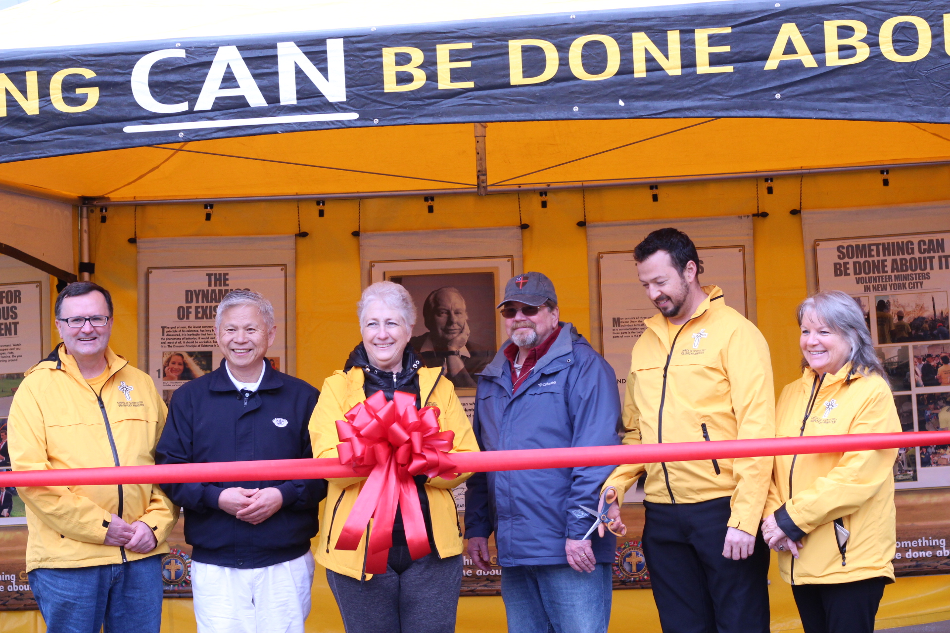 All joined in cutting the ribbon in front of the Volunteer Minister pavilion. Inside, VMs provide one-on-one help, courses and seminars based on spiritual technology developed by Scientology Founder L. Ron Hubbard. These cover the skills VMs use in responding to natural and manmade disasters along with technology for resolving everything from marriage difficulties or communication problems to drug abuse, illiteracy and job stress. Visitors may also avail themselves of a Scientology assist—a technique that addresses the spiritual and emotional factors in stress and trauma.
