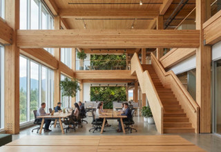 Fig. 2 - Exposed CLT beams in a Canadian mass timber office interior