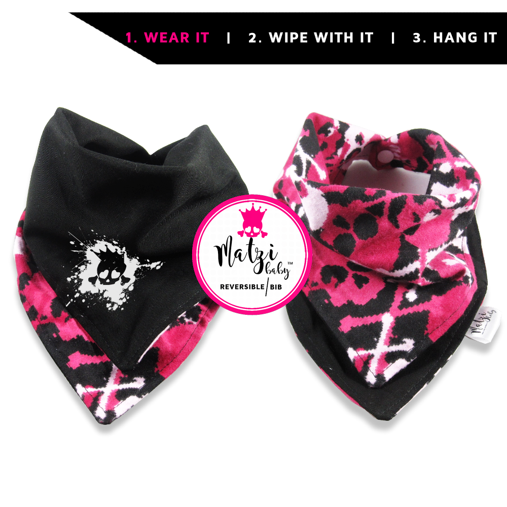 So she got to work and fashioned a reversible line of bibs that double as wipe cloths or small hand towels when unfolded. Each bib has an added fabric loop to hang it on a hook when not in use. But the bib’s originality doesn’t stop there. Every reversible bandana bib features a treasured silk screen-printed design, making it the ultimate accessory for both boys and girls, while absorbing the little ones’ drool.