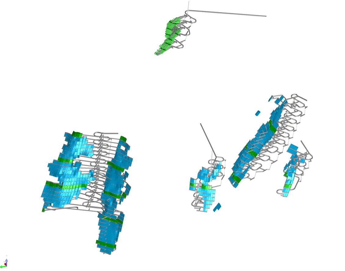 - Wireframe models were generated using gold and cobalt shells separately. Forty-eight separate gold and cobalt wireframes were constructed in Leapfrog Geo and grade distributions independently estimated using Ordinary Kriging in Leapfrog Edge. A gold top cut of 50 g/t Au was used for the gold domains. A cobalt top cut was not applied.