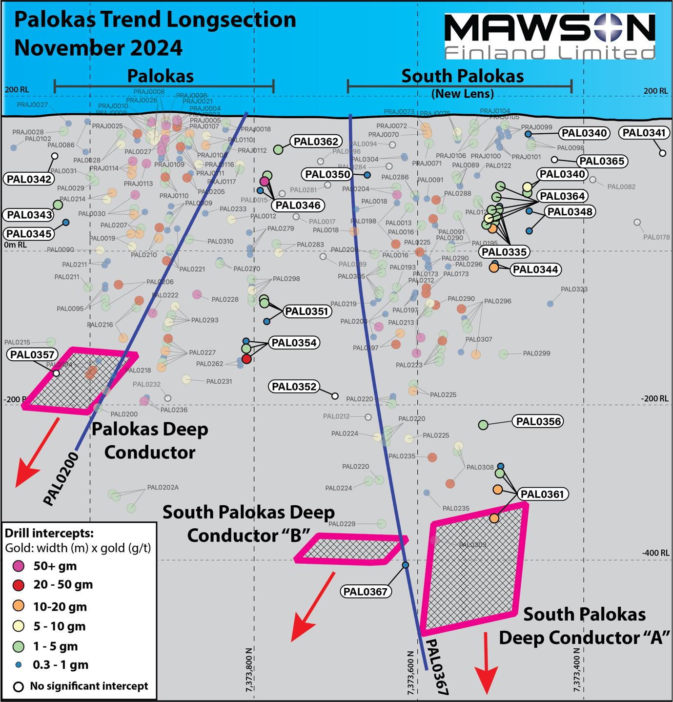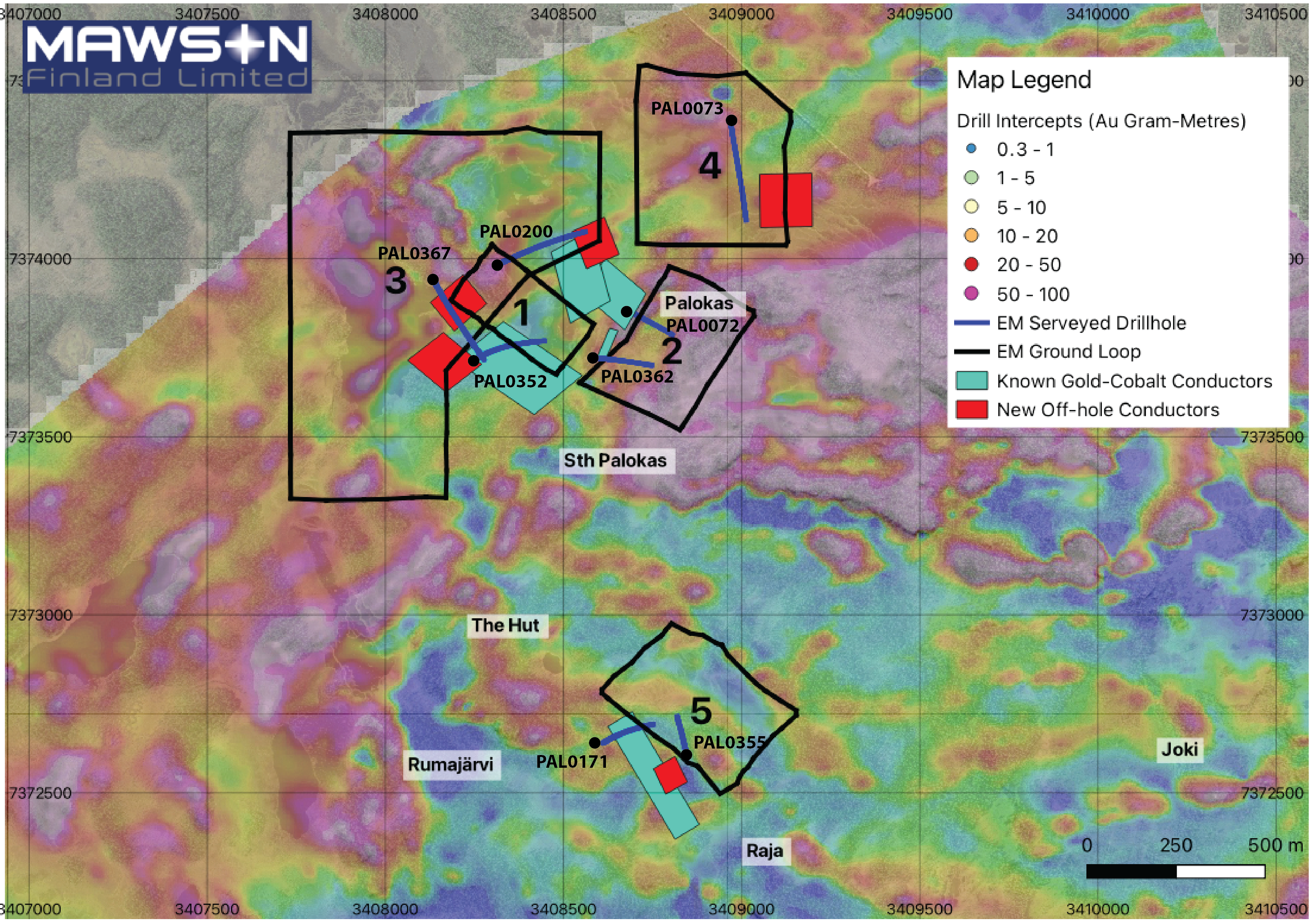 Ms. Noora Ahola, Mawson Finland CEO, states:"We are very excited to report the results of our recent geophysics surveys at Rajapalot. We have identified several exciting targets in downhole EM surveys that suggest the gold-cobalt mineralization at Rajapalot continues with depth at Palokas and South Palokas, while further anomalies are also present in un-drilled areas close-by. We plan to conduct further EM geophysical studies at Rajapalot in the coming weeks in our lead-up to the 2025 winter drilling campaign, in addition to an approximate 600-hectare sub-audio magnetic "SAM" ground-survey presently being carried out over our high-grade Rompas gold project located 6 kilometres east of Rajapalot. We look forward to presenting the results of these additional surveys prior to the initiation of our winter drilling campaign planned to begin in January 2025."