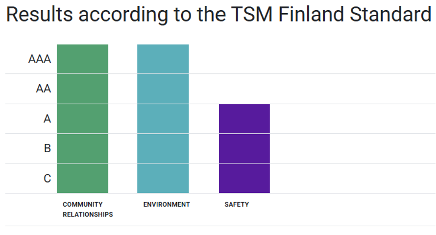 Mawson operations were classified to the highest possible AAA levels in "Community relationships" and "The Environment", and to level A, which is well above the Finnish legislative requirements, in "Safety".