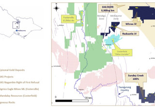 The Sunday Creek epizonal-style gold project is located 60 km north of Melbourne within 19,365 hectares of granted exploration tenements.