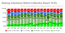 NORFOLK, Va., June 2, 2021 (Newswire.com) - Entrepreneurs who agree or strongly agree that "now is a good time to start a business" reached 67% in May, up from April's reading at 65.4% of respondents, and the second-highest in 11 months. FranchiseInsights.com compiles monthly the Small Business Startup Sentiment Index™ (SSI) of individuals who have recently inquired about businesses for sale.
