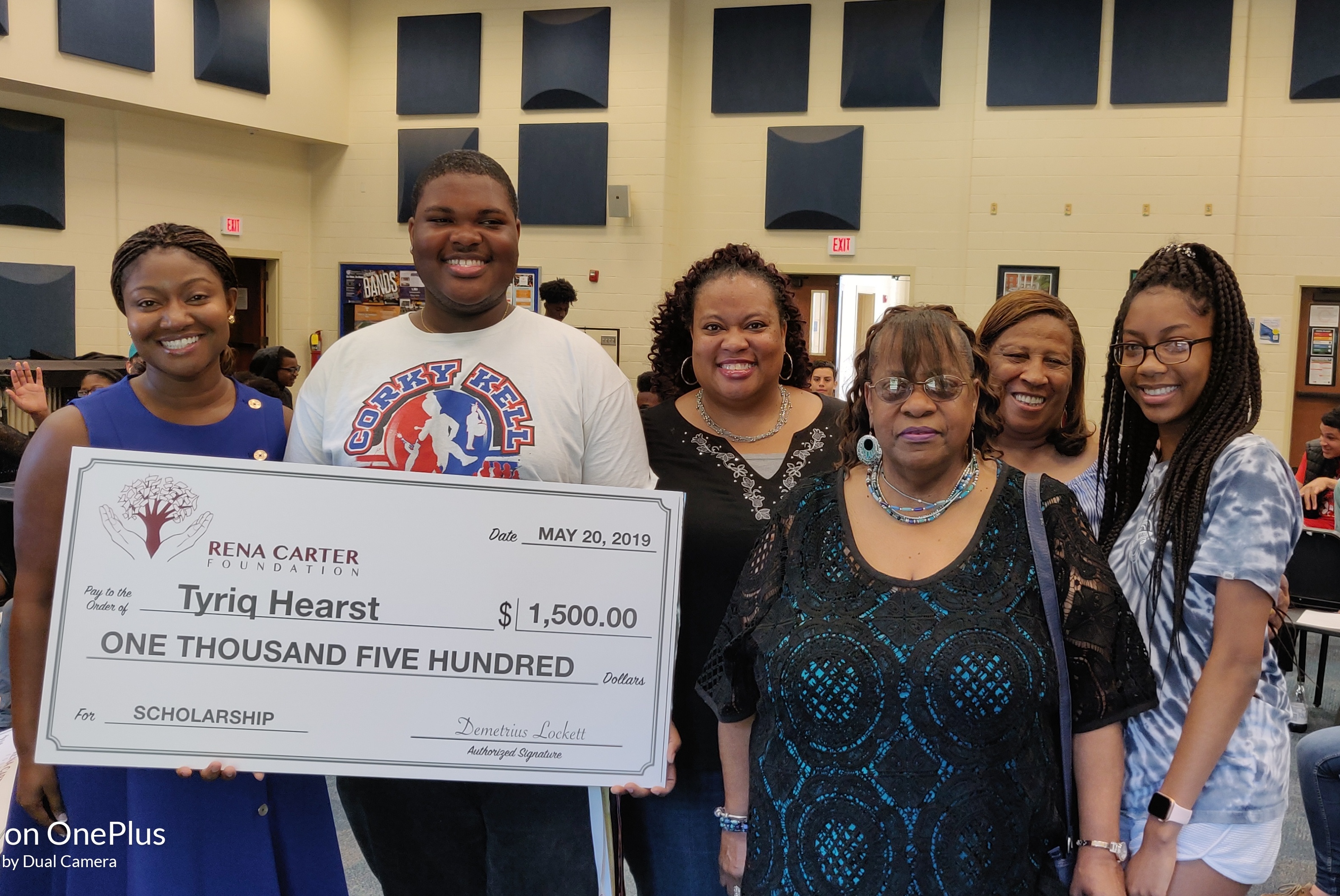 ATLANTA, May 21, 2019 (Newswire.com) - Today, Rena Carter Foundation Executive Director Alisha Thomas Cromartie surprised McEachern High School student Tyriq Hearst with a $1,500.00 check and named him the first recipient and winner of the 2019 Rena Carter Foundation scholarship. Hearst's mother, grandmother and best friend were on hand to celebrate. Hearst competed with students across the state of Georgia to win the scholarship by developing a sustainable financial plan for a recent college graduate. Tyriq Hearst was selected based on his creativity and the sustainability of his plan.