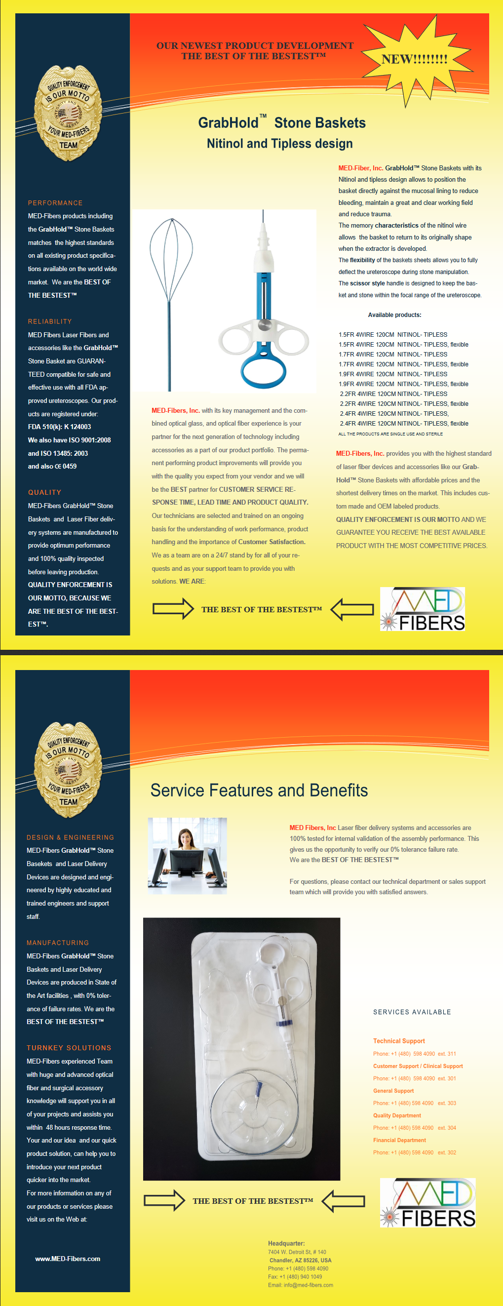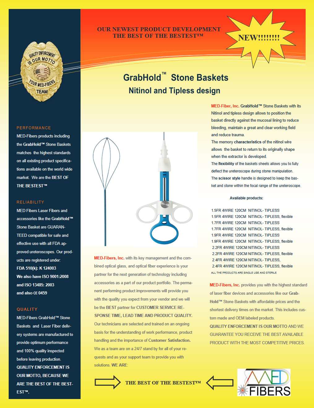 CHANDLER, Ariz., December 4, 2018 (Newswire.com) - MED-Fibers, Inc. announces the distribution of MED-Fibers, Inc. GrabHold™ Stone Basket with its Nitinol and tipless design allowing for the positioning of the basket directly against the mucosal lining. This reduces bleeding and maintains a great and clear working field and reduced trauma.
