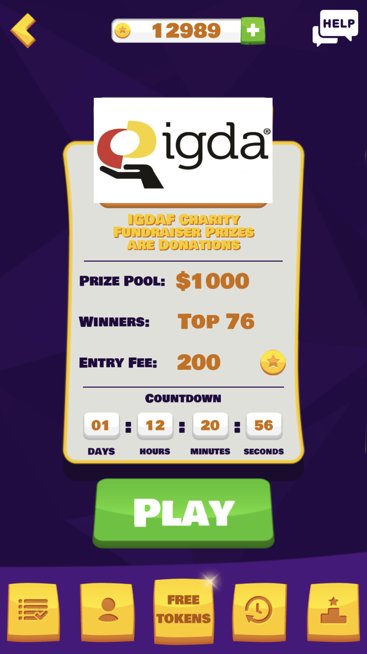 The IGDA Foundation eSports Tournament Series is fun, challenging and easy to enter: Download the game, register with an email address or mobile phone number and make in-app purchases for tokens to play the game. Revenue from the token purchases go to the IGDA Foundation and donations and are tax deductible. Prizes are matched with donations to the IGDA Foundation. Players and supporters are also encouraged to make direct donations outside the eSport tournament to the IGDA Foundation, by visiting https://igdafoundation.org.