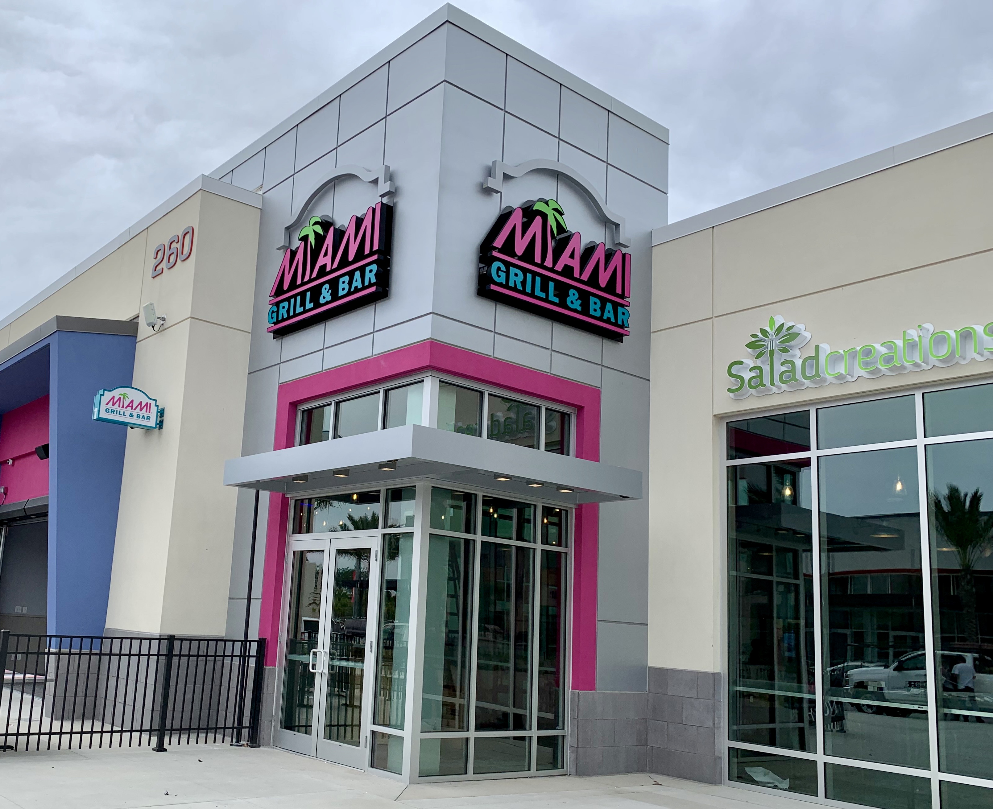 Located at 260 Daytona Blvd, this is the first official Miami Grill® & Bar to open as well as the first time the restaurant group will be offering guests this hybrid restaurant concept, in which both Miami Grill® and sister brand, Salad Creations, will operate in the same restaurant space. This will allow guests to enjoy iconic offerings from both brands including the premium ingredients and build-your-own salad options found at Salad Creations, plus the Everything Goes® menu, sleek South Beach style, and best-in-class customer service that guests have come to expect from a Miami Grill® restaurant. Designed to provide a more sophisticated experience, the new Miami Grill® & Bar location at ONE DAYTONA boasts a curated list of signature cocktails, enhanced menu of appetizers, and a vibrant look designed to tastefully reflect the energy of Daytona Beach and the influence of South Beach.